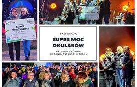 Z radością informujemy, że nasza szkoła zdobyła I miejsce w konkursie "SuperMocOkularow". Dzięki zaangażowaniu Rodziców, Uczniów i Nauczycieli naszej szkoły zebraliśmy najwięcej uszkodzonych, nieużywanych i przede wszystkim szkodliwych okularów. Byliśmy bezkonkurencyjni.